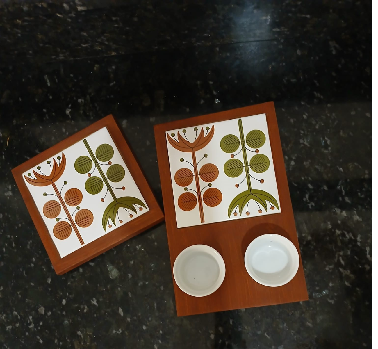 Tabua em madeira com Azulejo Cerâmico 15cm X 15cm