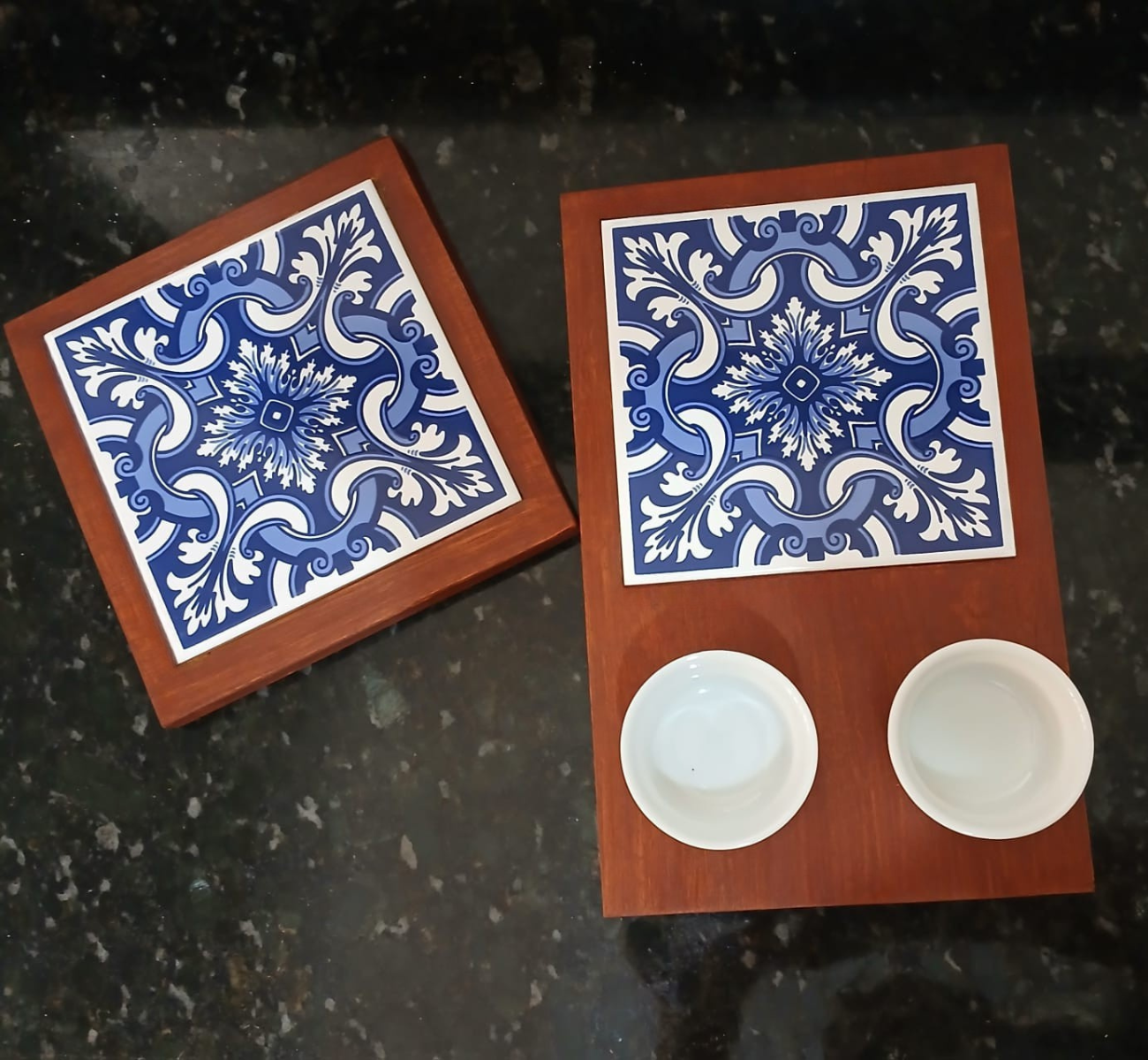 Tabua em madeira com Azulejo Cerâmico 15cm X 15cm