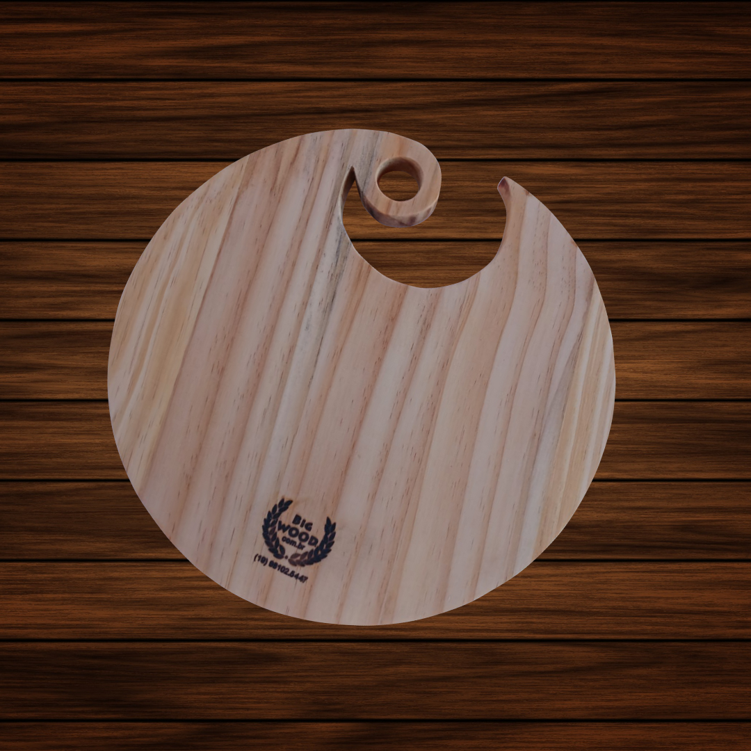 Madeira de origem sustentável, com cada peça possuindo veios e tons únicos, tornando sua tábua exclusiva e ecologicamente responsável.